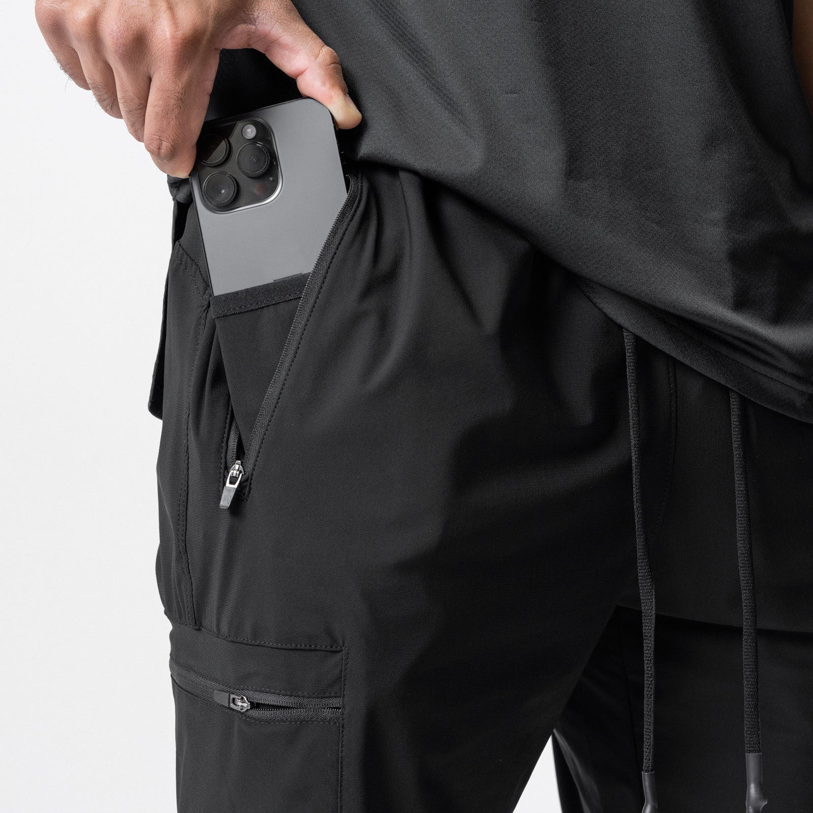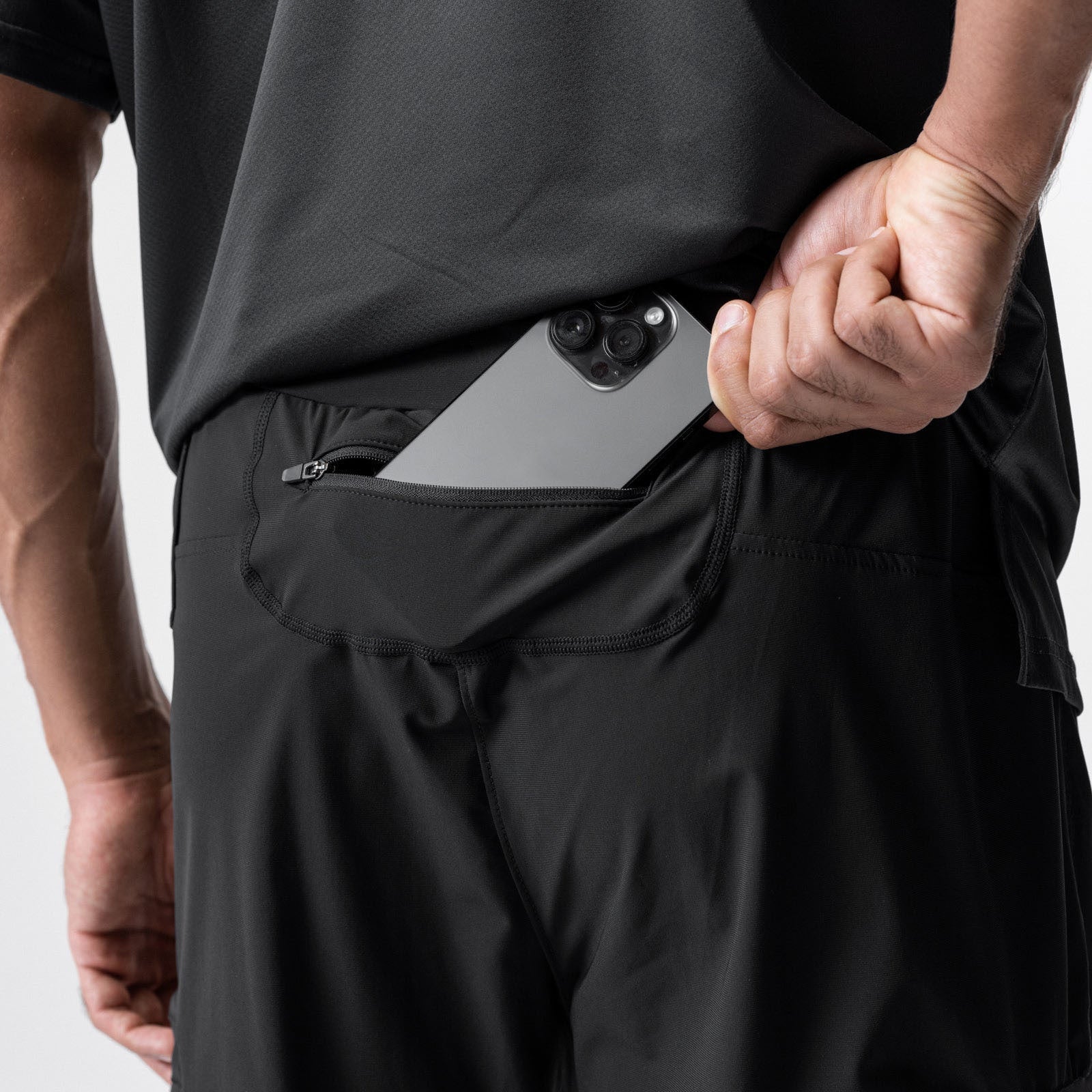Utility pockets for phone, card or keys and a shirt/towel loop.